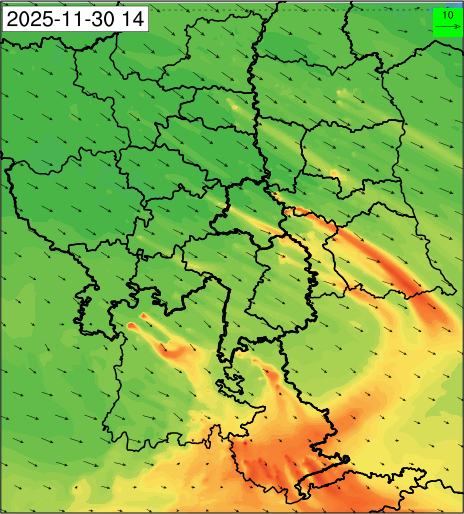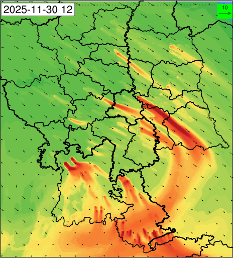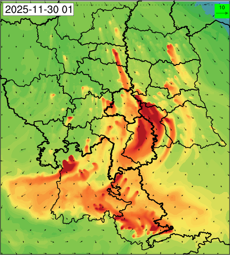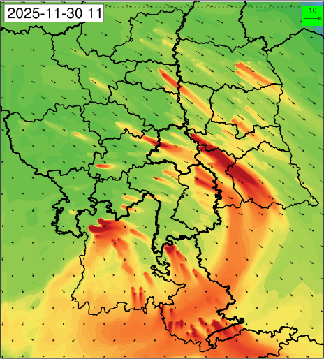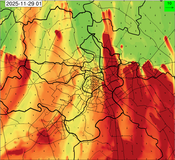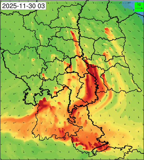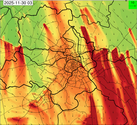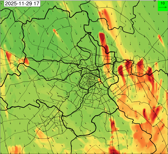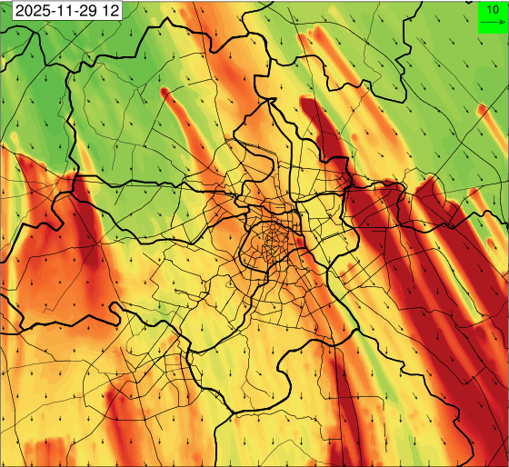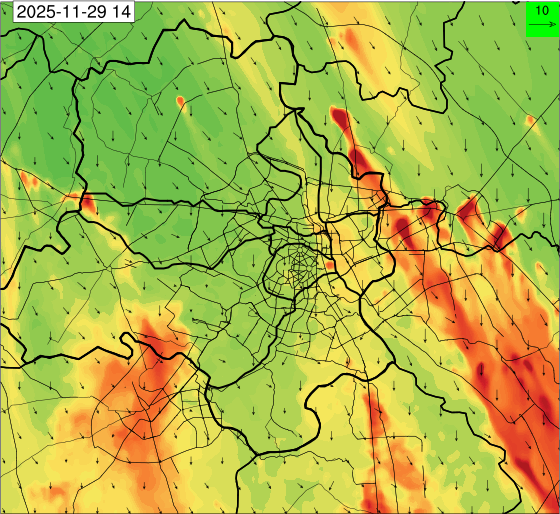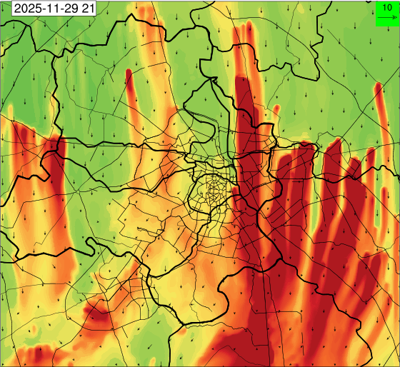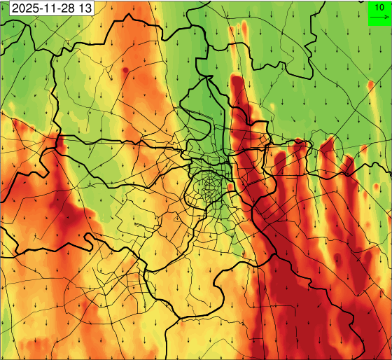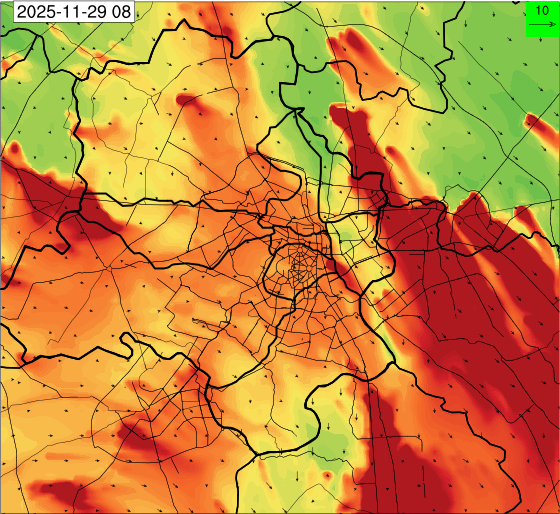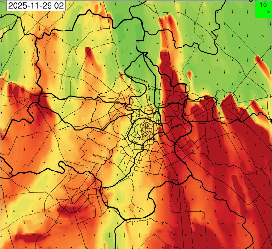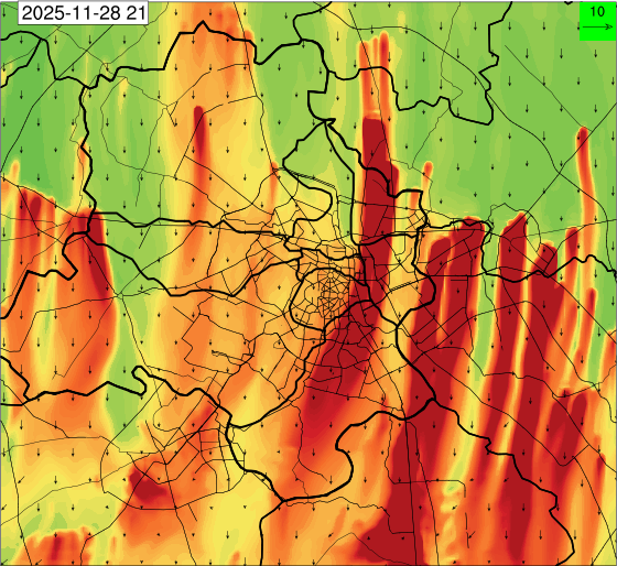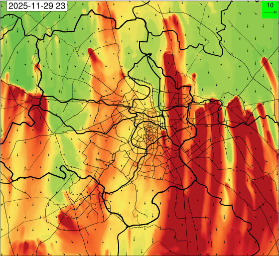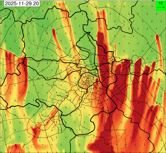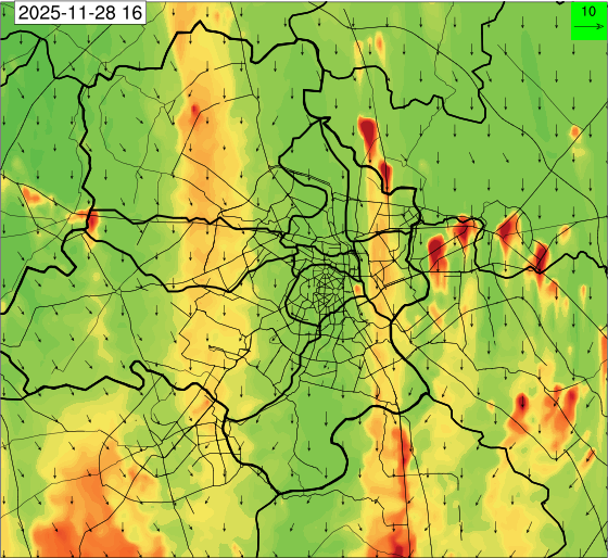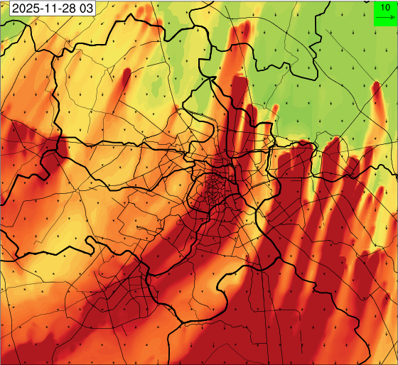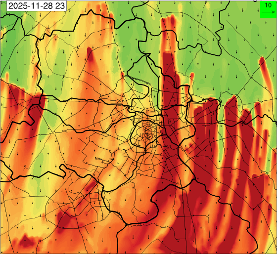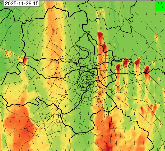 3. Predicted maximum mixing depth is likely to be 1050 m on 28.11.2025, 1450 m on 29.11.2025, 1000 m on 30.11.2025, and 1100 m on 01.12.2025 over Delhi. Ventilation index is likely to be 4500 m2/s on 28.11.2025, 8500 m2/s on 29.11.2025, 6000 m2/s on 30.11.2025 and 4500 m2/s on 01.12.2025 over Delhi. The ventilation index lower than 6000 m2/s with average wind speed less than 10 kmph is unfavourable for dispersion of pollutants.