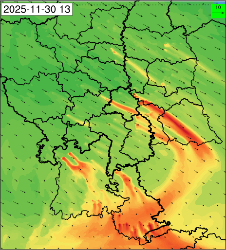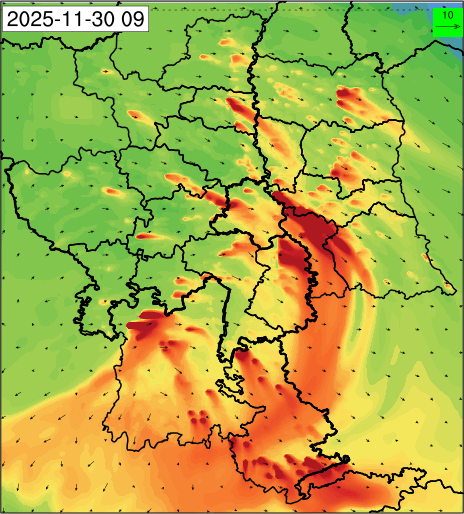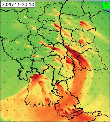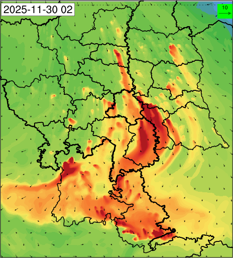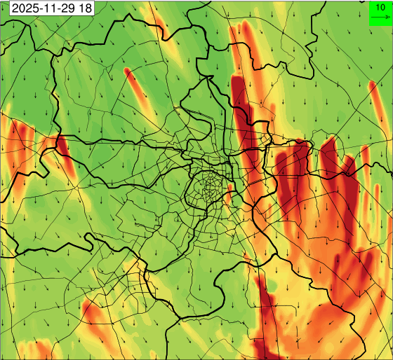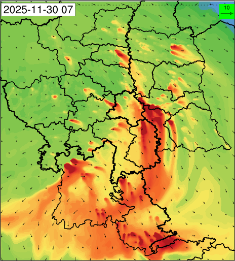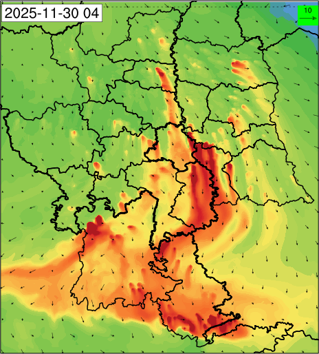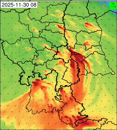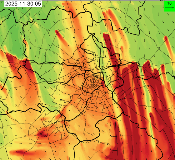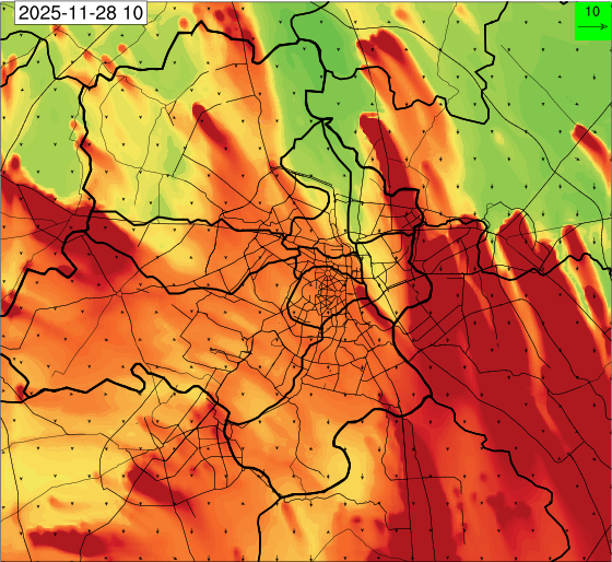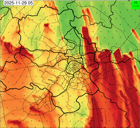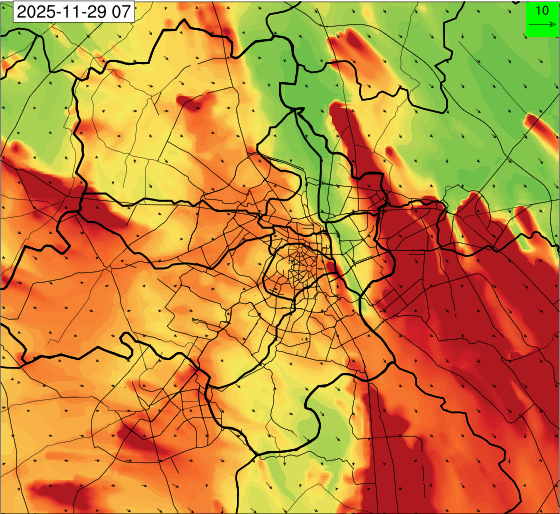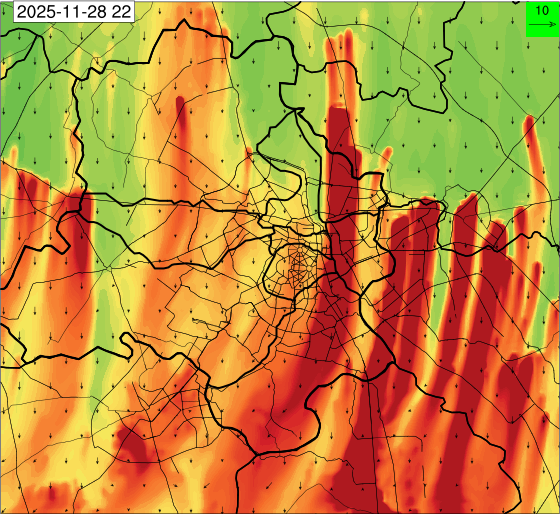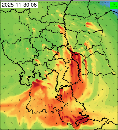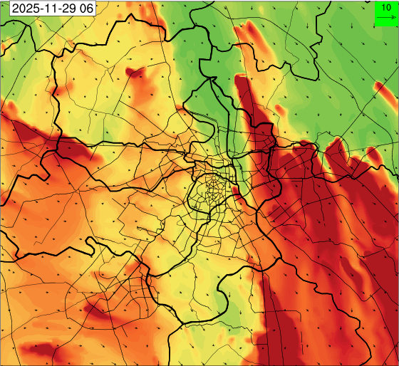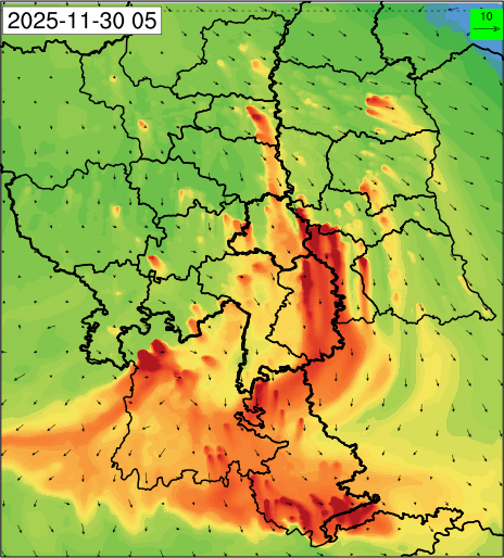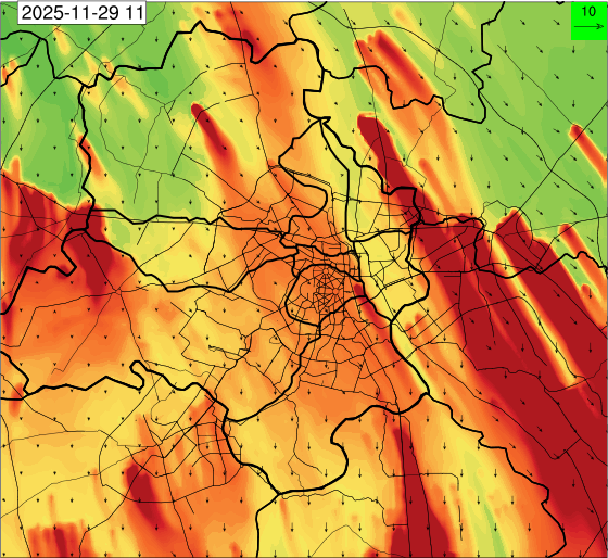 1. Past Weather and Air Quality Observation: The air quality over Delhi was in Very poor category with CPCB AQI 377 at 4 PM on 27.11.2025. No significant change in maximum temperatures and minimum temperatures during the past 24 hours over Delhi. Shallow fog occurred at isolated places over Delhi. The maximum and minimum temperatures over Delhi were around 23 to 26 °C and 08 to 10°C, respectively. The minimum temperatures are appreciably below normal (-3.1 to -5.0 °C) at a few places and below normal (-1.6 to -3.0) at isolated places and normal (-1.5 to 1.5) over the remaining parts of Delhi. The maximum temperatures were below normal (-1.6 to -3.0 °C) at isolated places and normal (-1.5 to 1.5°C) at many places over Delhi. Smoke was reported at Safdarjung and Palam Airports. Safdarjung airport recorded the lowest visibility of 500m from 0730 Hrs IST to 0800 Hrs IST on 28.11.2025, which thereafter improved, becoming 600m at 0800 Hrs IST. Palam airport recorded the lowest visibility of 600m from 0830 Hrs IST to 0900 Hrs IST on 28.11.2025, which thereafter improved, becoming 700m at 0930 Hrs IST. Mainly clear sky conditions with predominant surface wind from the northeast direction, with a wind speed up to 09 kmph, prevailed during the past 24 hours. Mainly clear sky conditions with wind from the southwest direction with a wind speed up to 09 kmph in early morning hours, gradually increasing up to 10 kmph from the northwest direction prevailed over the region in the forenoon today.