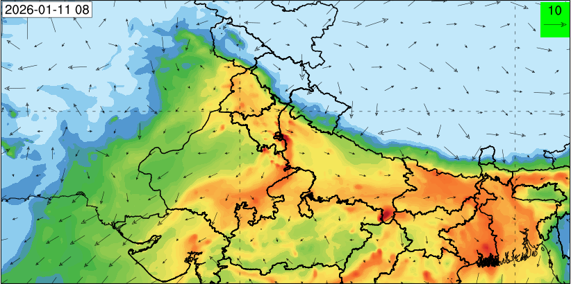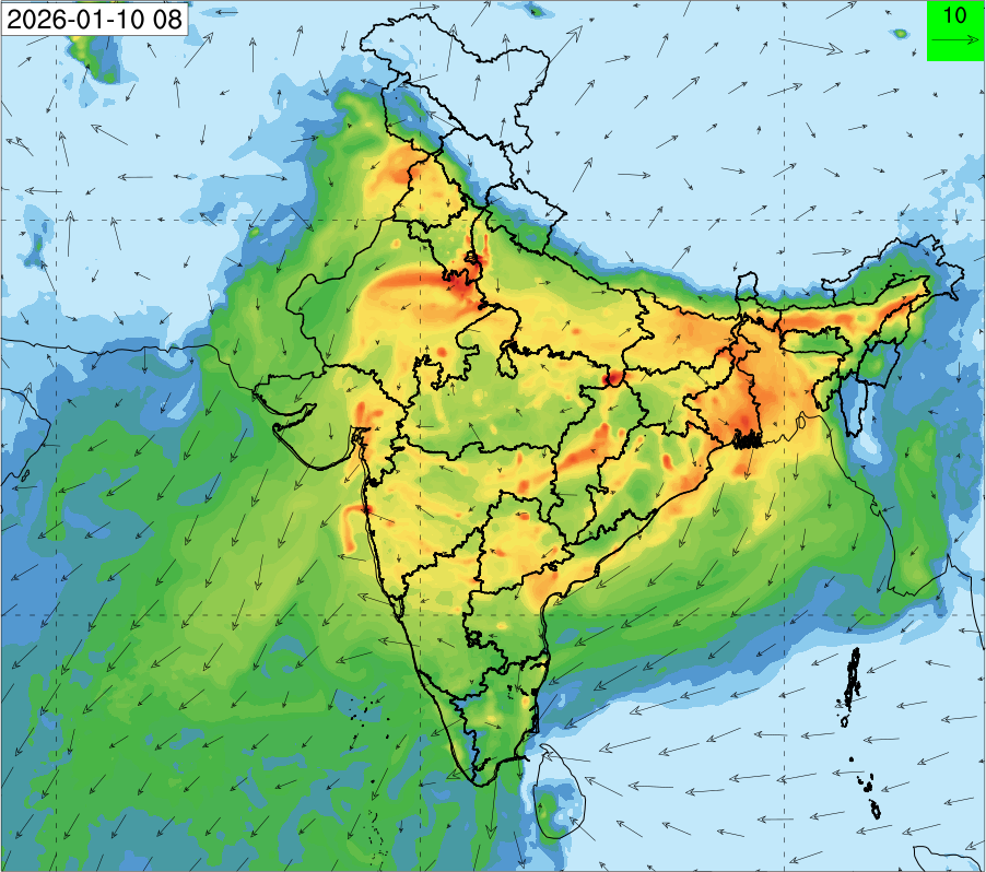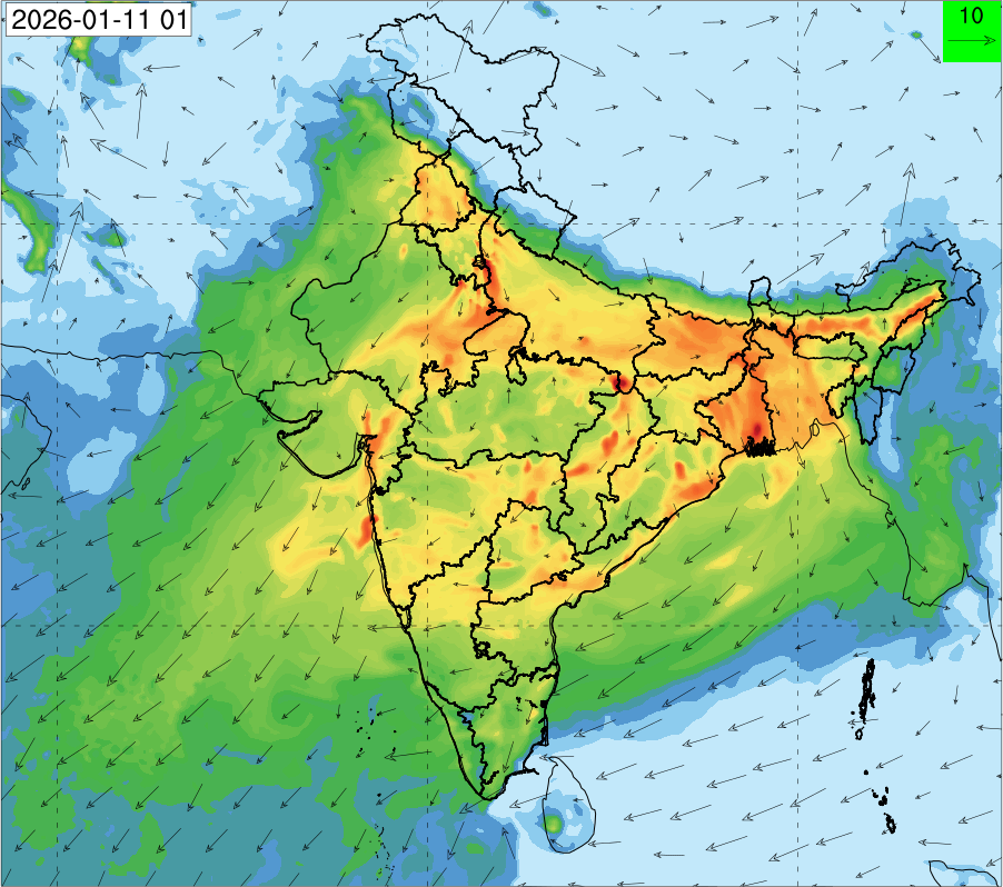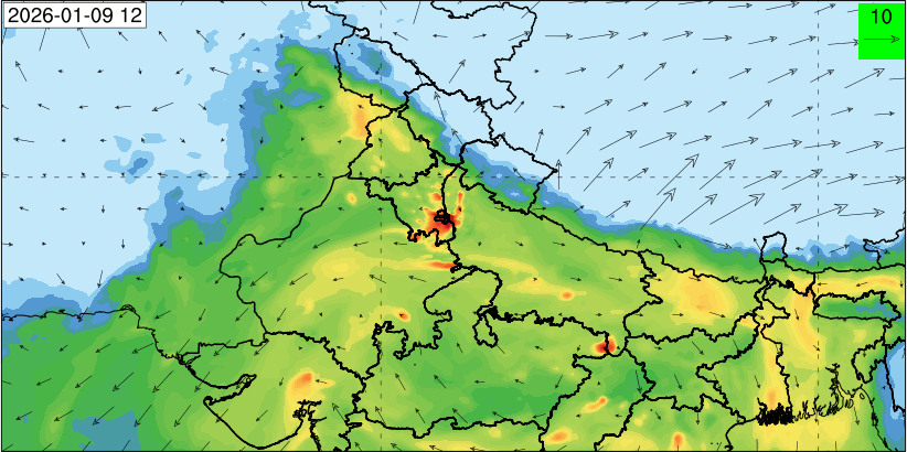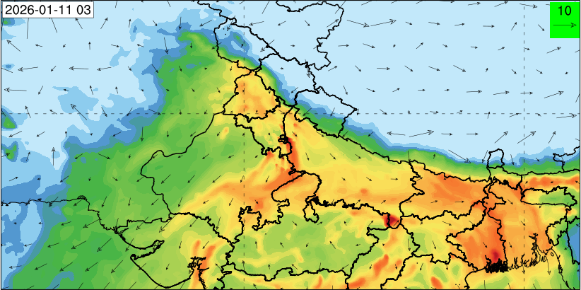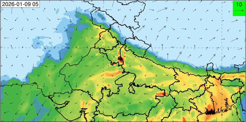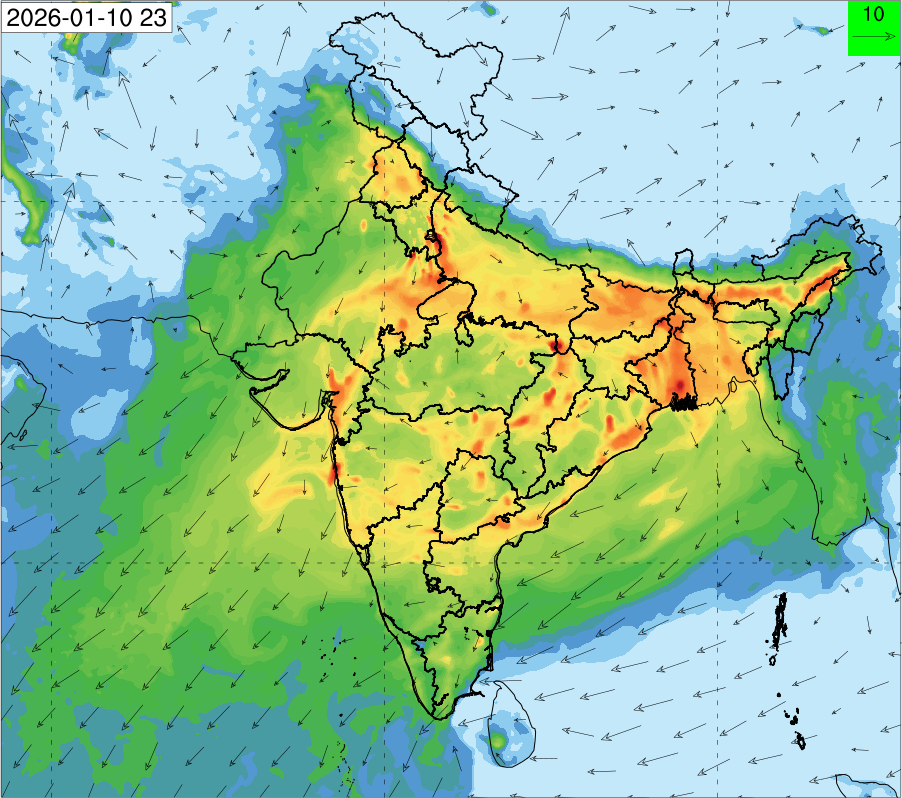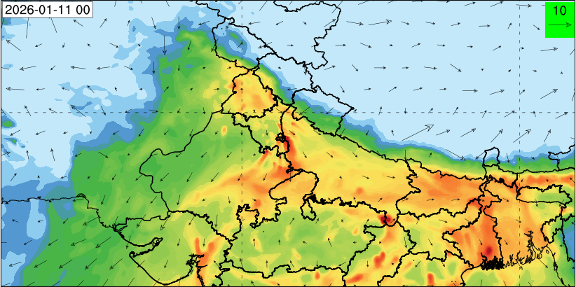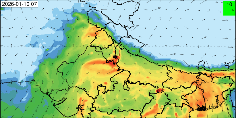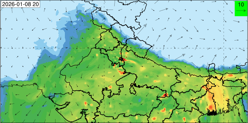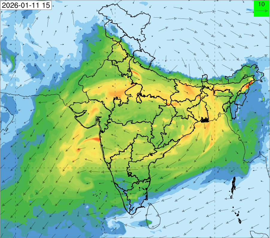 3. Predicted maximum mixing depth is likely to be 1500m on 15.02.2026, 1550m on 16.02.2026, 1000m on 17.02.2026, and 900m on 18.02.2026 over Delhi. Ventilation index is likely to be 10500m2/s on 15.02.2026, 7000m2/s on 16.02.2026, 1000m2/s on 17.02.2026 and 1500m2/s on 18.02.2026 over Delhi. The ventilation index lower than 6000 m2/s with average wind speed less than 10 kmph is unfavourable for dispersion of pollutants.