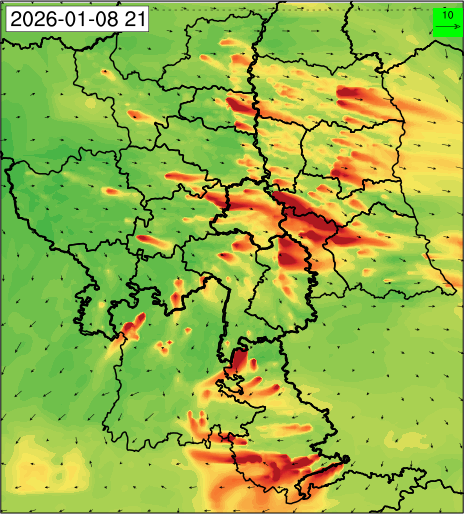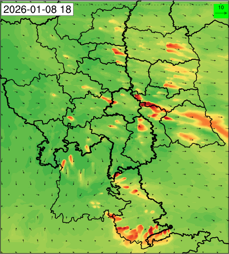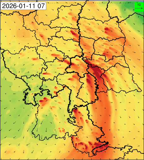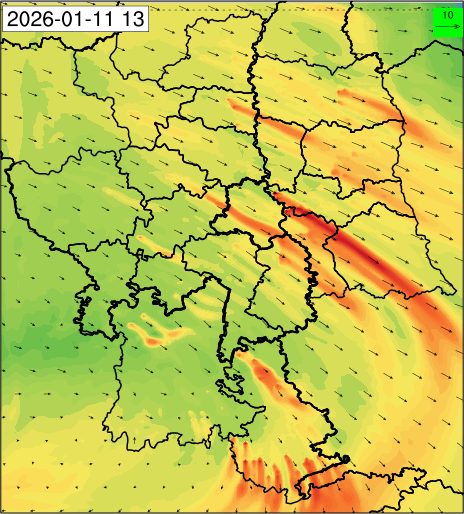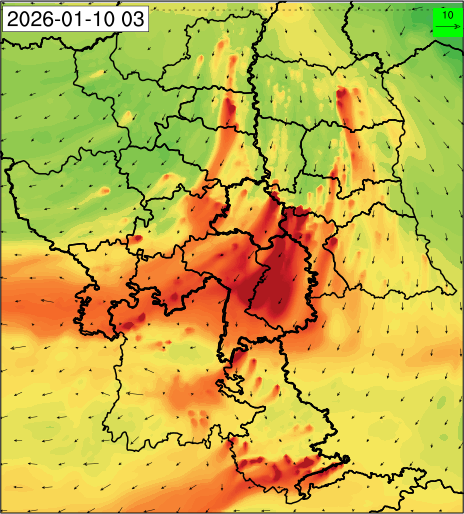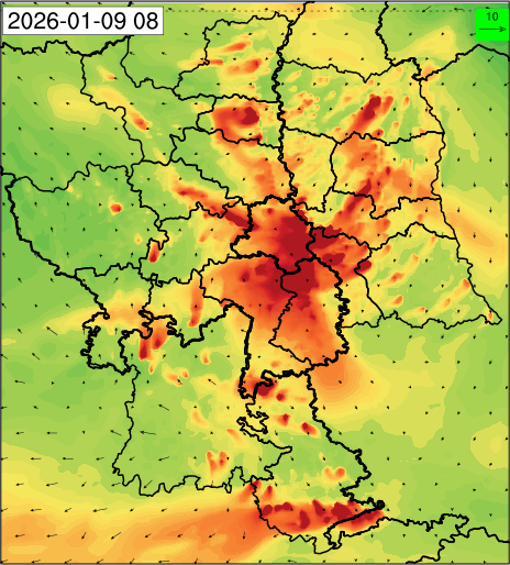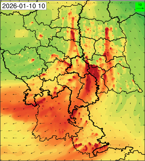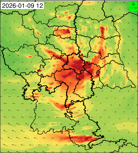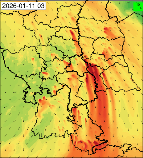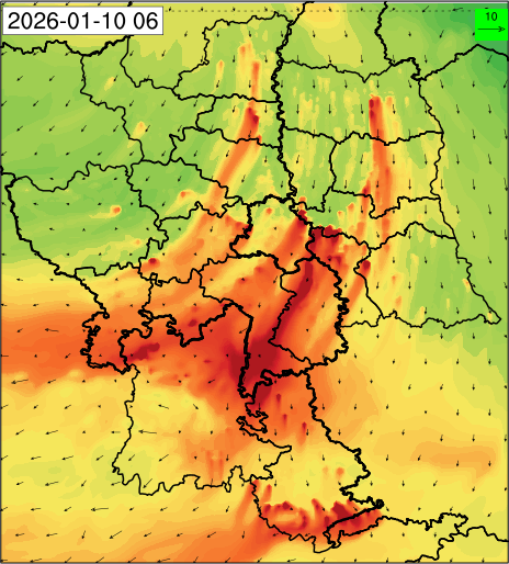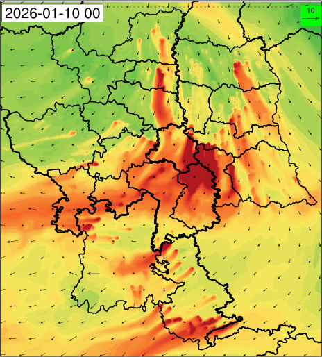 3. Predicted maximum mixing depth is likely to be 900m on 13.01.2026, 850m on 14.01.2026, 800 m on 15.01.2026, and 750 m on 16.01.2026 over Delhi. Ventilation index is likely to be 4500 m2/s on 13.01.2026, 4500 m2/s on 14.01.2026, 4000 m2/s on 15.01.2026 and 3200 m2/s on 16.01.2026 over Delhi. The ventilation index lower than 6000 m2/s with average wind speed less than 10 kmph is unfavourable for dispersion of pollutants.