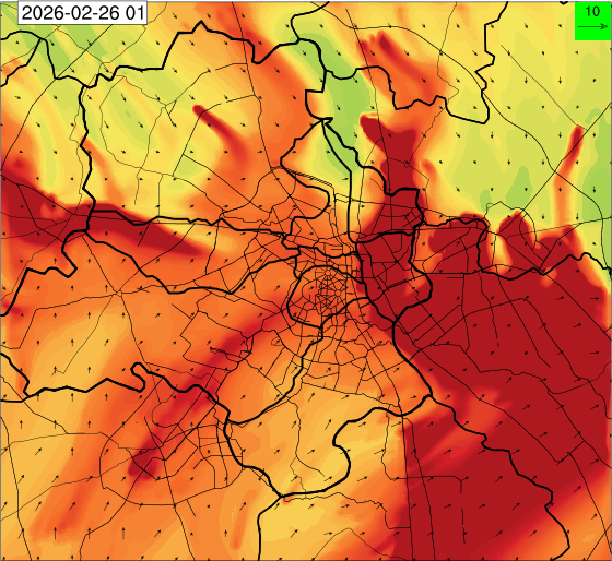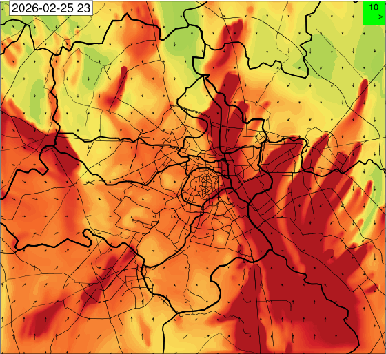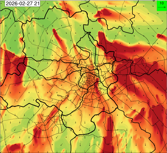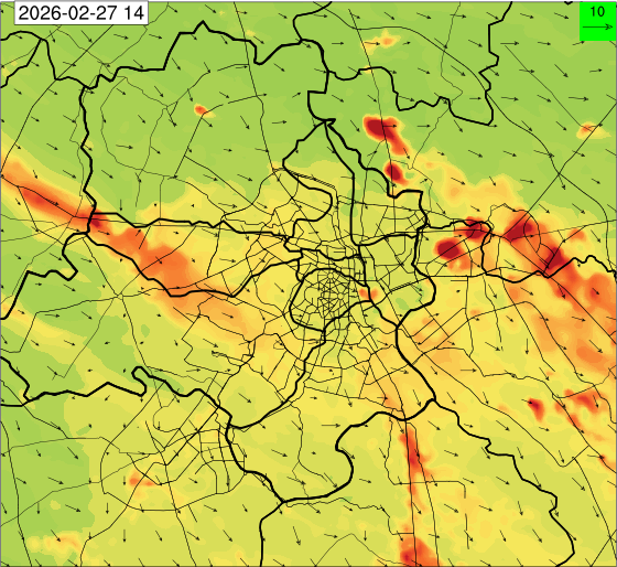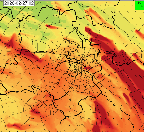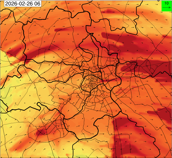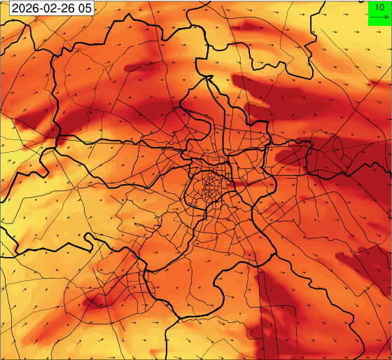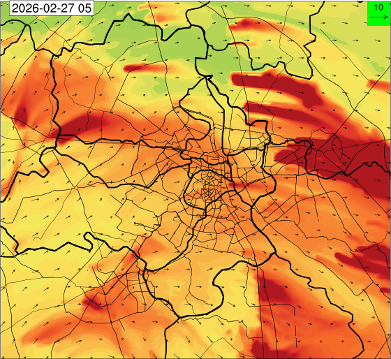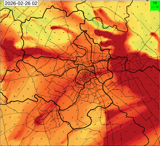1. Past Weather and Air Quality Observation: The air quality over Delhi was in Poor category with CPCB AQI 228 at 4 PM on 25.02.2026. There has been rise in the minimum temperatures up to 1°C and no large change the maximum temperature during past 24 hours over Delhi. The maximum temperatures were in the range of 28-31°C and the minimum temperatures are in the range 13-15°C respectively during past 24 hours over Delhi. The minimum temperatures are above normal (1.6°C to 3.0°C) at a few places and normal (-1.5°C to 1.5°C) at many parts of Delhi. The maximum temperatures were above normal (1.6°C to 3.0°C) at isolated places and appreciably above normal (3.1°C to 5.0°C) at most places over Delhi. Mainly clear sky with wind speed reaching up to 16 kmph from the west direction prevailed over past 24 hours. Mainly clear sky. Surface wind speed reaching up to 12 kmph from the west direction prevailed over the region in the forenoon today.