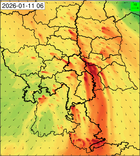 1. Past Weather and Air Quality Observation: The air quality over Delhi was in Poor category with CPCB AQI 297 at 4 PM on 12.01.2026. There has been no large change in the minimum temperature and rise in the maximum temperature by 1-2°C during the past 24 hours over Delhi. The maximum temperatures over Delhi were around 16 to 20°C and the minimum temperatures are around 03-04°C, respectively. The minimum temperatures are appreciably below normal (-3.1 to -5.0) at many places and below normal (-1.6 to -3.0°C) at isolated places over Delhi. The maximum temperatures are appreciably below normal (-3.1 to -5.0) at isolated places, above normal (1.6 to 3.0) at isolated places and normal (-1.5°C to 1.5°C) over remaining parts of Delhi. Cold wave conditions have been realized at many places over Delhi. Safdarjung airport reported lowest visibility 600m from 0800 IST to 0830 IST which thereafter improved to 700m from 0900 IST onwards. Palam airport reported lowest visibility 600m from 0730 IST to 0830 IST which thereafter improved to 700m from 0900 IST of today, 09-01-2026. Mainly clear sky conditions with predominant surface wind from the northwest directions with a wind speed up to 08 kmph prevailed during the past 24 hours. Partly cloudy sky conditions associated with calm wind reaching upto 05 kmph from the west direction prevailed over the region in the forenoon today.
