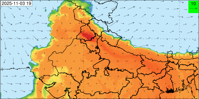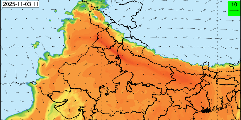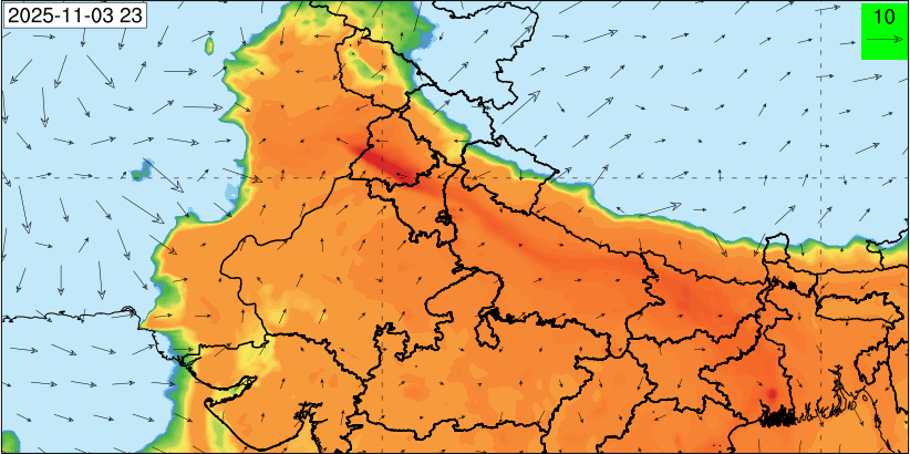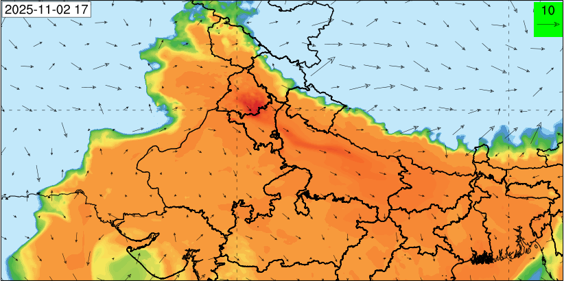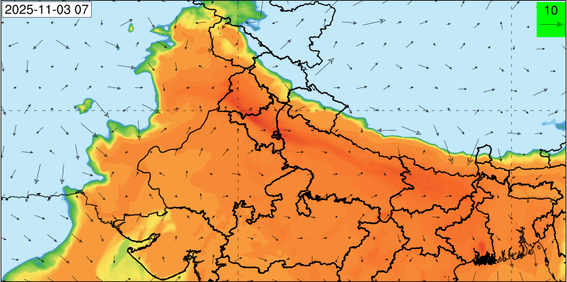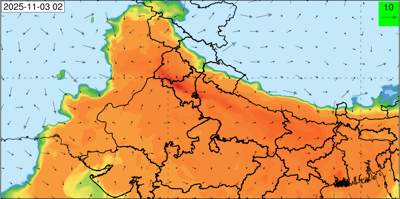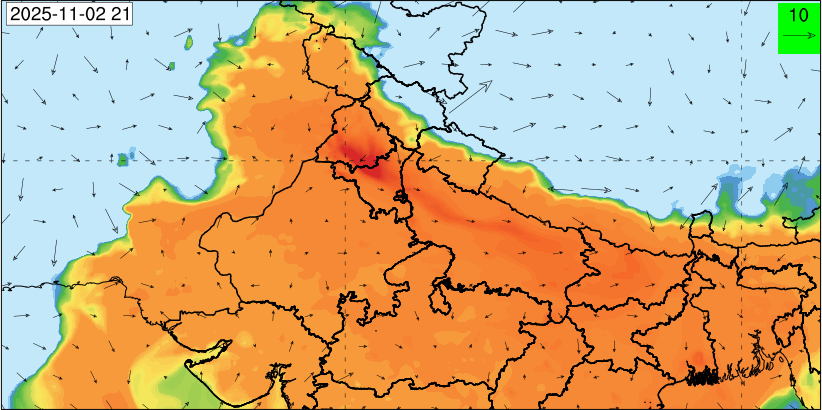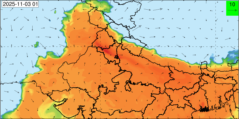 IITM WRF-Chem Model hourly Air Quality forecast for Next 72 Hours (Time in IST)