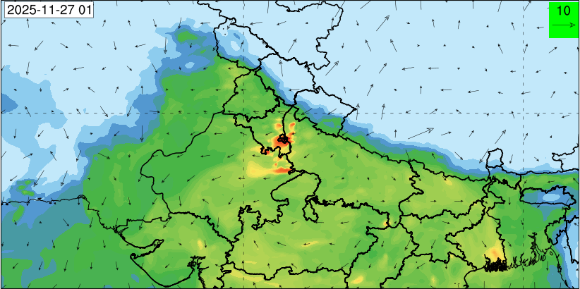 IITM WRF-Chem Model hourly Air Quality forecast for Next 72 Hours (Time in IST)