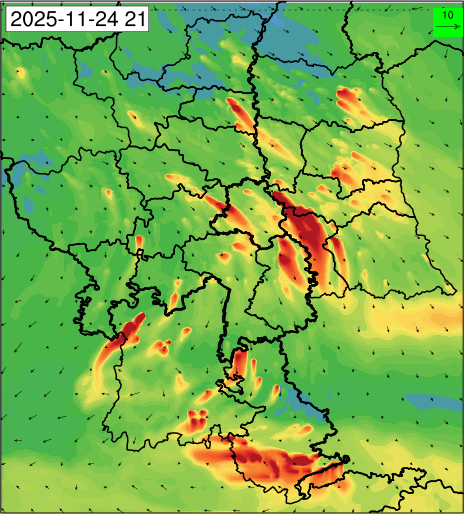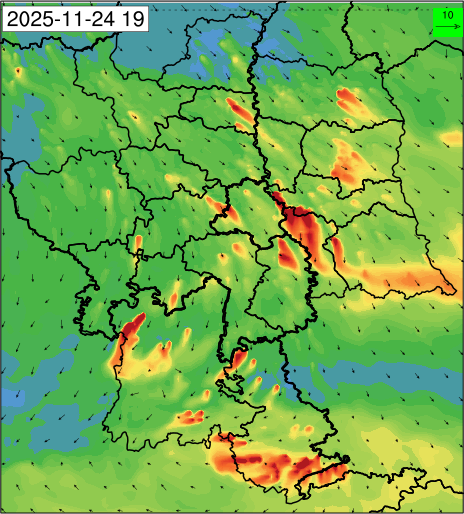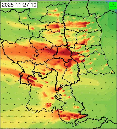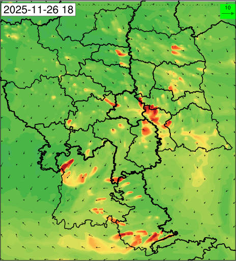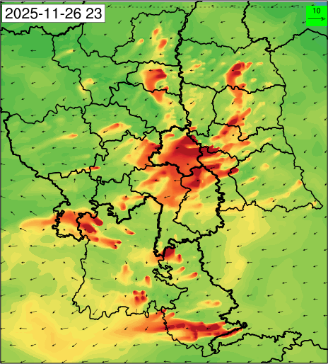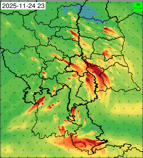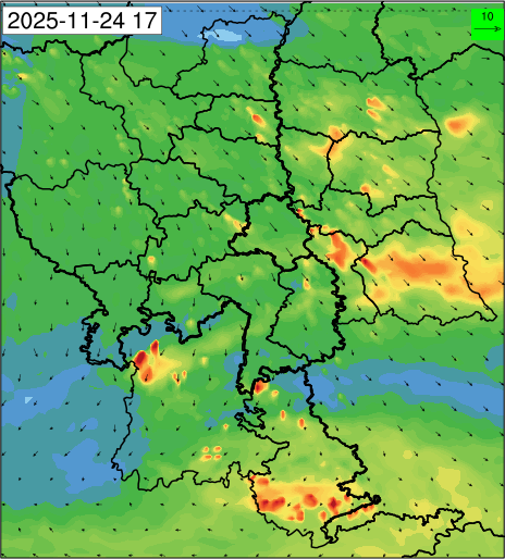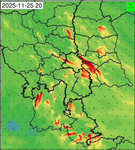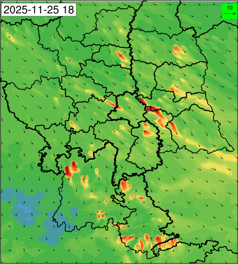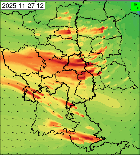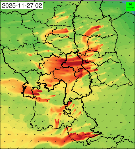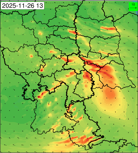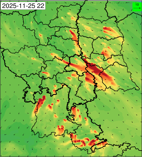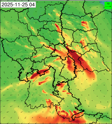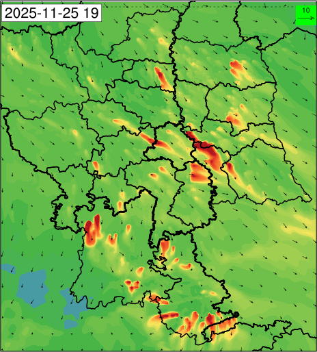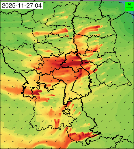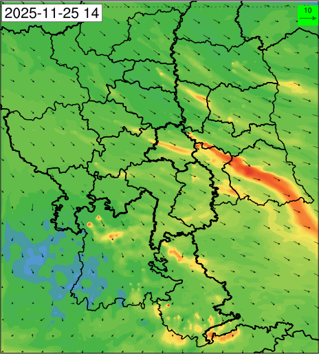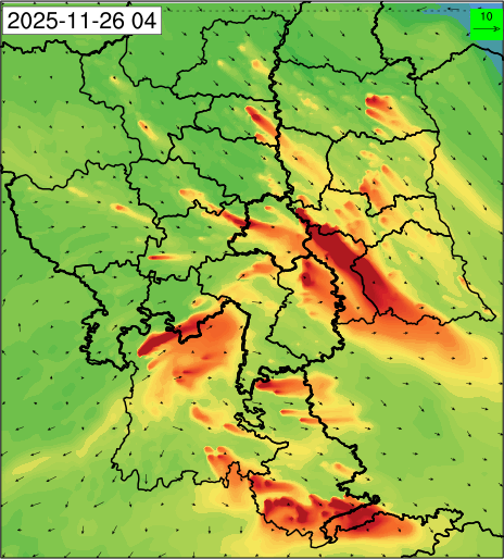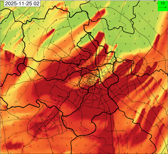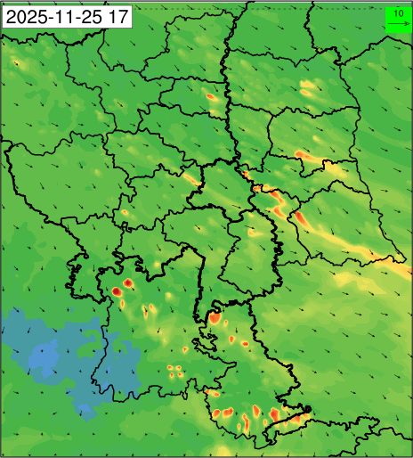 1. Past Weather and Air Quality Observation: The air quality over Delhi was in Very poor category with CPCB AQI 353 at 4 PM on 25.11.2025. There has been a slight fall in minimum and maximum temperatures by 01°C during the past 24 hours over Delhi. The maximum and minimum temperatures over Delhi were around 24 to 26 °C and 07 to 10°C, respectively. The minimum temperatures are appreciably below normal (-3.3 to 5.1°C) at most places and below normal (-1.6 to -2.5 °C) at many places in Delhi. The maximum temperatures are appreciably below normal (-3.1 to 5.0°C) at isolated places and below normal (-1.6 to -3.0 °C) at many places and normal (-1.5 to 1.5°C) at a few places over Delhi. Smoke was reported at Palam Airport. Mainly clear sky conditions with predominant surface wind from the west direction with a wind speed up to 12 kmph prevailed during the past 24 hours. Mainly clear sky conditions with calm wind in early morning hours, gradually increasing up to 06 kmph from the southwest direction prevailed over the region in the forenoon today.